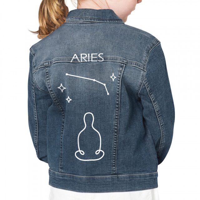 Aries Zodiac Sign Kids’ Denim Jacket is made from a cotton blend fabric and has the perfect fit that’s ‘just right.’ It’s lighter than a winter coat, so works a treat layered over fleece and sweaters.
