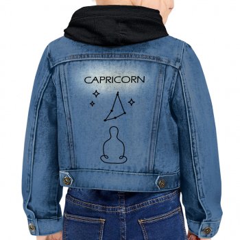Minimalist Capricorn Toddler Hooded Denim Jacket – Print Jean Jacket – Unique Denim Jacket for Kids