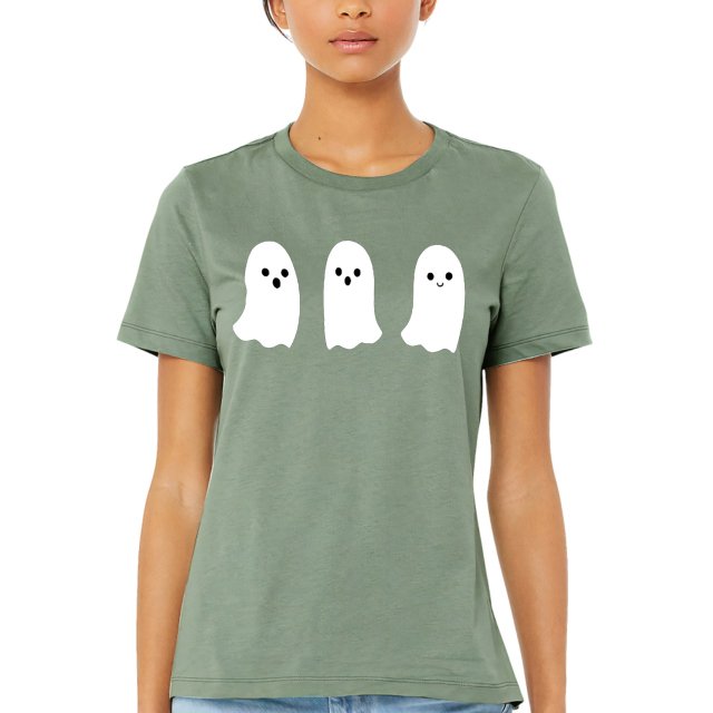 Cute Minimalist Ghost Women’s T-Shirt – Women Clothing – Ghost Print Stuff