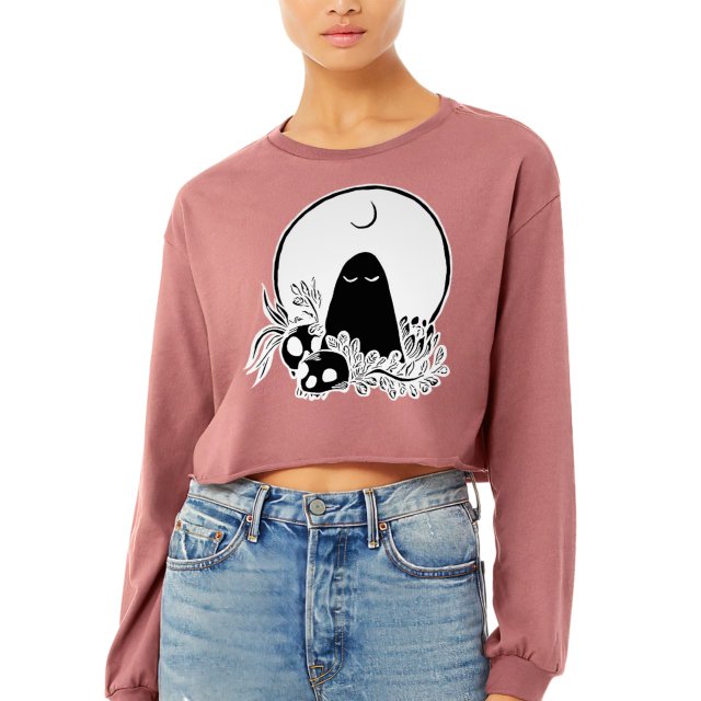 Funny Ghost Cropped Long Sleeve T-Shirt – Ghost Print Clothing – Women Clothing
