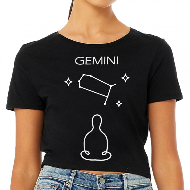 Gemini Design Women’s Cropped T-Shirt – Constellation Crop Top – Unique Cropped Tee
