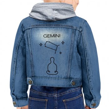 Minimalist Gemini Toddler Hooded Denim Jacket – Themed Jean Jacket – Art Denim Jacket for Kids