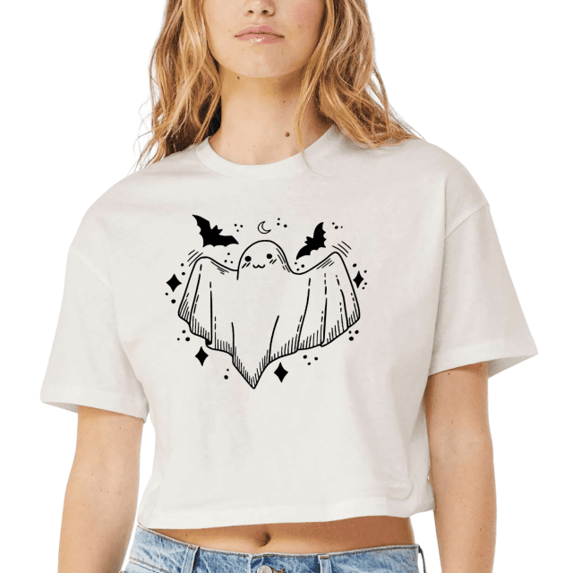 Ghost Illustration Women’s Crop Tee Shirt – Presents for Ghost Lovers – Best Present Ideas