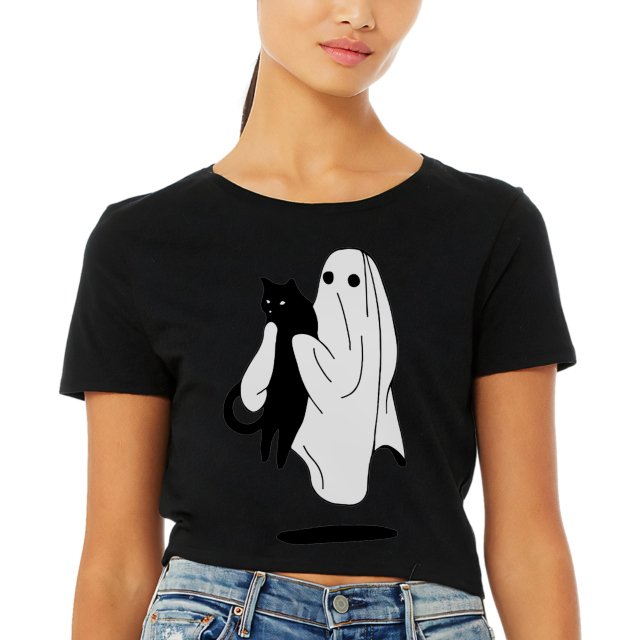 Ghost With Cat Cropped T-Shirt is no ordinary piece of clothing. Its form-fitting silhouette and soft fit and feel provide a retail fit for clothing that’s true to size.