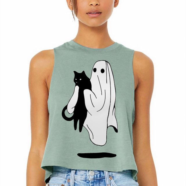 Ghost With Cat Racerback Cropped Tank – Ghost Print Apparel – Unique Presents
