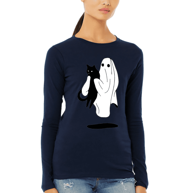 Ghost With Cat Women’s Long Sleeve T-Shirt – Ghost Print Stuff – Great Present Ideas