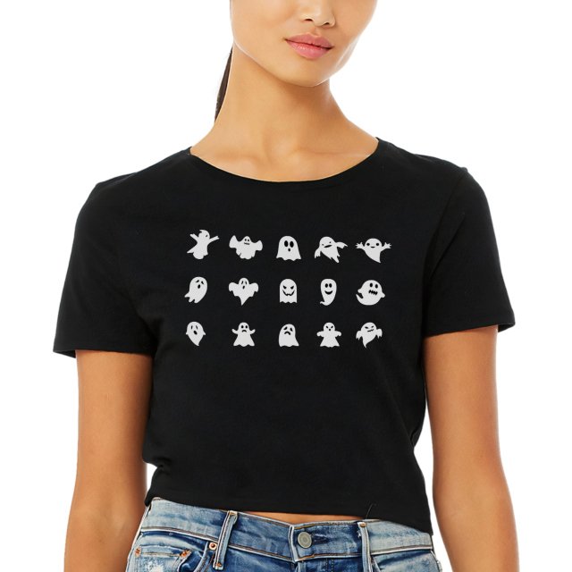 Halloween Ghosts Cropped T-Shirt – Presents for Women – Unique Presents