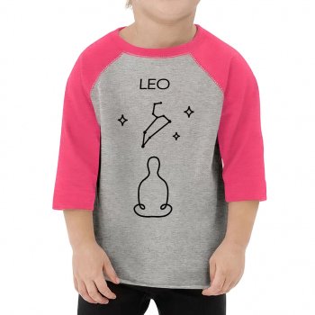 Minimalist Leo Toddler Baseball T-Shirt – Unique 3/4 Sleeve T-Shirt – Illustration Kids’ Baseball Tee
