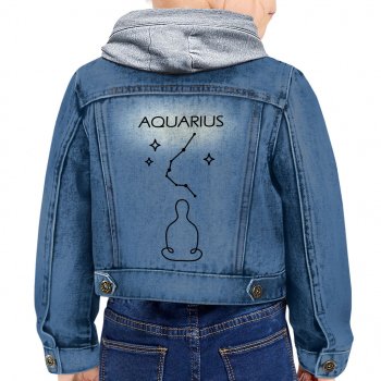 Minimalist Aquarius Toddler Hooded Denim Jacket – Graphic Jean Jacket – Constellation Denim Jacket for Kids