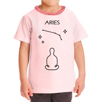 Minimalist Aries Girls’ Ruffle Neck T-Shirt – Illustration Toddler T-Shirt – Art Print Ruffle Neck Tee