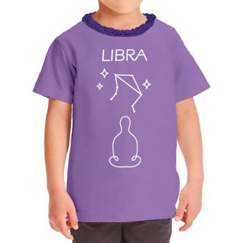 Minimalist Libra Girls’ Ruffle Neck T-Shirt – Constellation Toddler T-Shirt – Print Ruffle Neck Tee
