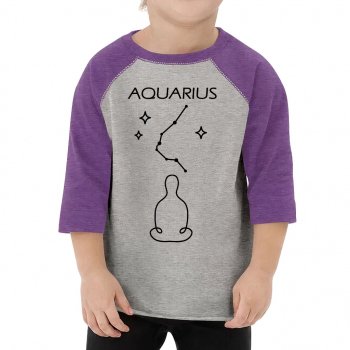 Minimalist Aquarius Toddler Baseball T-Shirt – Graphic 3/4 Sleeve T-Shirt – Constellation Kids’ Baseball Tee