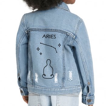 Minimalist Aries Toddler Denim Jacket – Illustration Jean Jacket – Art Print Denim Jacket for Kids