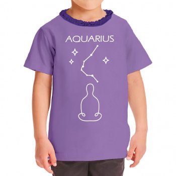Minimalist Aquarius Girls’ Ruffle Neck T-Shirt – Graphic Toddler T-Shirt – Constellation Ruffle Neck Tee