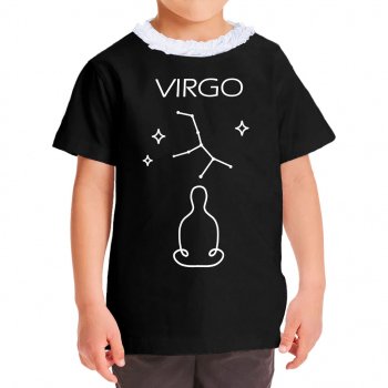 Minimalist Virgo Girls’ Ruffle Neck T-Shirt – Zodiac Sign Toddler T-Shirt – Drawing Ruffle Neck Tee