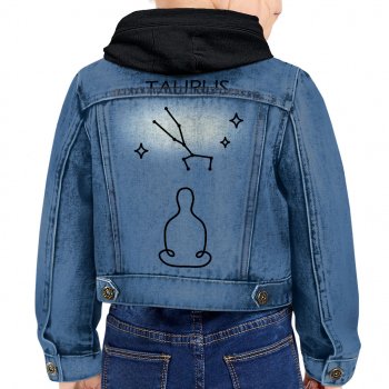 Minimalist Taurus Toddler Hooded Denim Jacket – Graphic Art Jean Jacket – Sign Denim Jacket for Kids