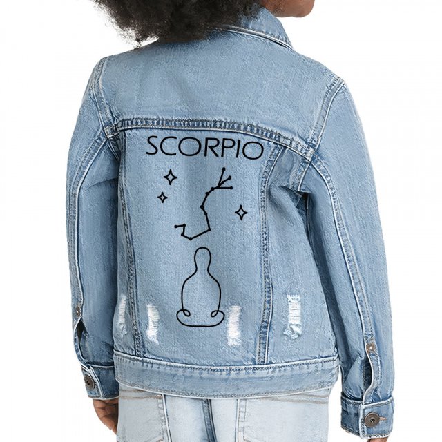 Minimalist Scorpio Toddler Denim Jacket – Drawing Jean Jacket – Graphic Denim Jacket for Kids