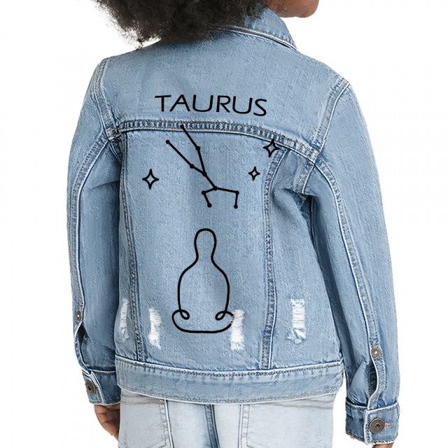 Minimalist Taurus Toddler Denim Jacket – Graphic Art Jean Jacket – Sign Denim Jacket for Kids
