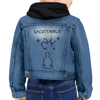 Minimalist Sagittarius Toddler Hooded Denim Jacket – Art Jean Jacket – Zodiac Denim Jacket for Kids