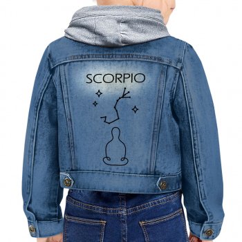 Minimalist Scorpio Toddler Denim Jacket – Drawing Jean Jacket – Graphic Denim Jacket for Kids