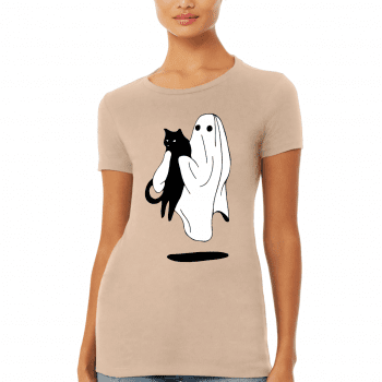 Ghost With Cat Slim Fit T-Shirt – Presents for Ghost Lovers – Women Apparel