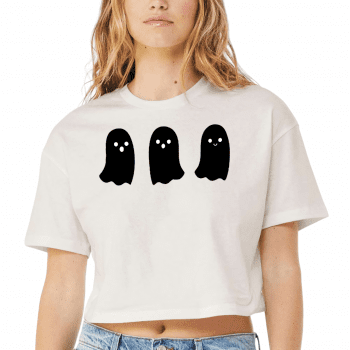 Cute Minimalist Ghost Women’s Crop Tee Shirt – Ghost Print Apparel – Great Present Ideas