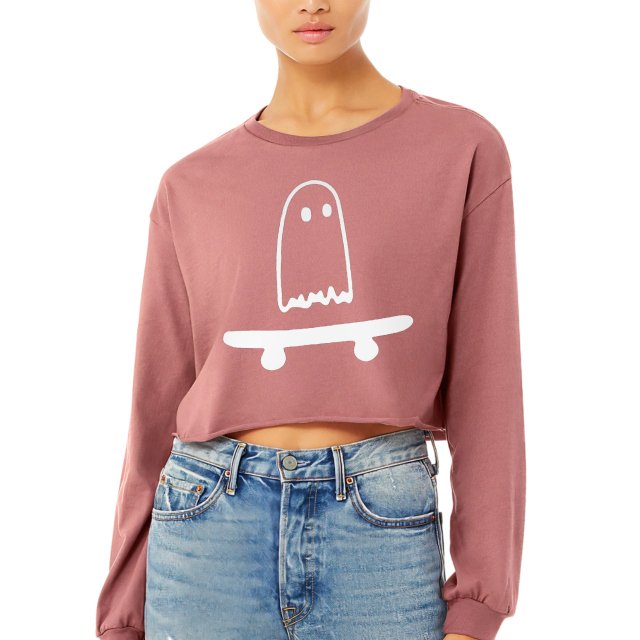 Skateboarding Ghost Cropped Long Sleeve T-Shirt – Ghost Print Items – Women Clothing