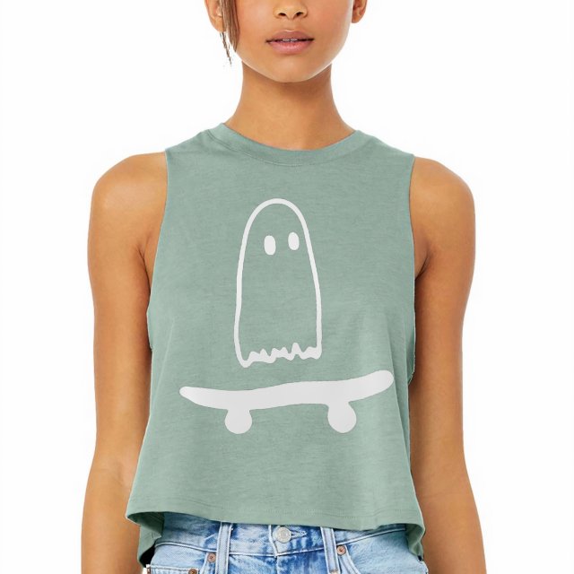 Skateboarding Ghost Racerback Cropped Tank – Ghost Print Clothing – Ghost Print Presents