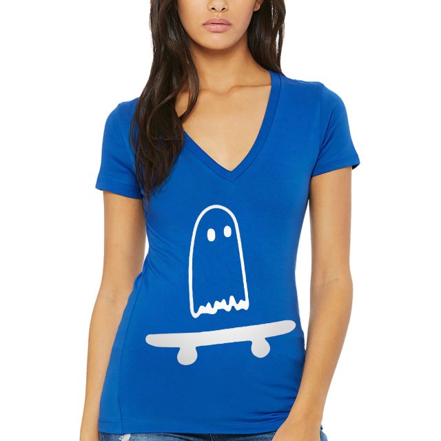 The fabric of our shirt is super soft, lightweight, breathable, and cozy. Skateboarding Ghost Women’s V-Neck T-Shirt features a modern feminine fit, deep V-neck, short sleeves and superior Airlume combed and ring-spun cotton.