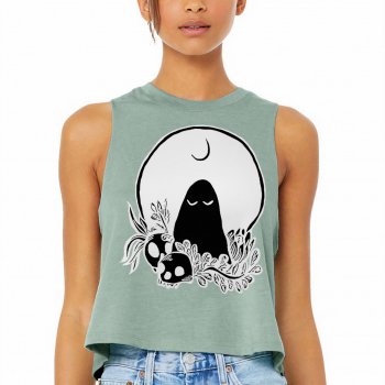 Ghost Illustration Racerback Cropped Tank – Women Clothing – Great Present Ideas