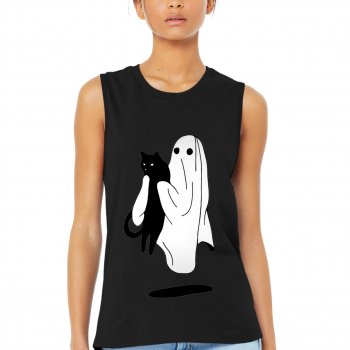 Ghost With Cat Women’s Muscle Tank – Presents for Her – Unique Presents