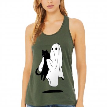 Ghost With Cat Women’s Racerback Tank – Ghost Print Stuff – Presents for Ghost Lovers