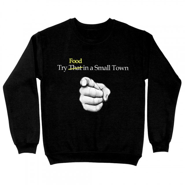 Try Food in a Small Town Crewneck Sweatshirt is made from a 50% U.S. Cotton/50% Polyester blend, this warm