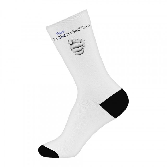 Cushioned foot bottom makes Try Peace in a Small Town Socks a sure bet for everyday wear, from work, play, gym, sports, and beyond. These socks are designed to be all-season. This product is made breathable for when it’s warm but thick enough for when it’s cold during the winter.