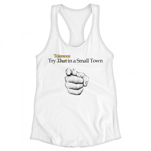 Try Tolerance in a Small Town Racerback Tank is no ordinary piece of clothing. Its side-seamed detail and flatlock-finished hems provide a retail fit for clothing that’s true to size.